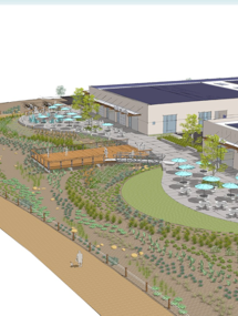 The Bikeway Village project is a collaboration between Studio E Architects and landLAB. The project site is situated along a key transition point along Bayshore Bikeway, and provides an informal entrance to Imperial Beach. The project transforms two large existing warehouse buildings creating a welcoming, functional rest-stop for both bikers, travelers and locals; complete with a one-stop bicycle and repair shop, cafes and a hostel. A host of amenities are oriented towards the bay and bikeway include; a large outdoor deck with formal and informal seating, outdoor fire pit, restored native wetland planting and landscaped retention basin, bicycle parking, water bottle refill station, trail-side rest stop and public restrooms.